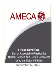 AMECA 5 Year Duration List of Acceptable Plastics for Optical Lenses and Reflex Reflectors December 5, 2025